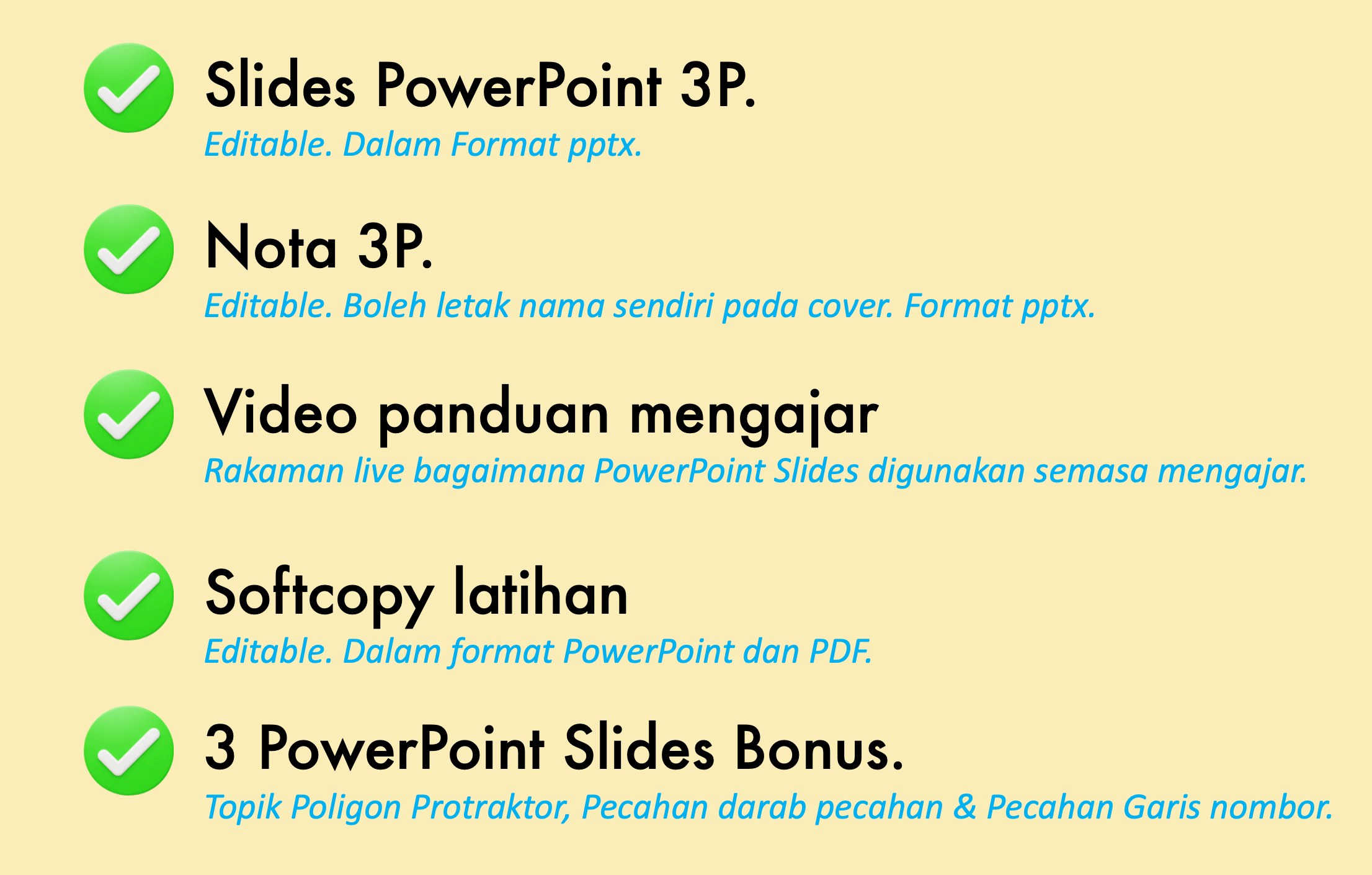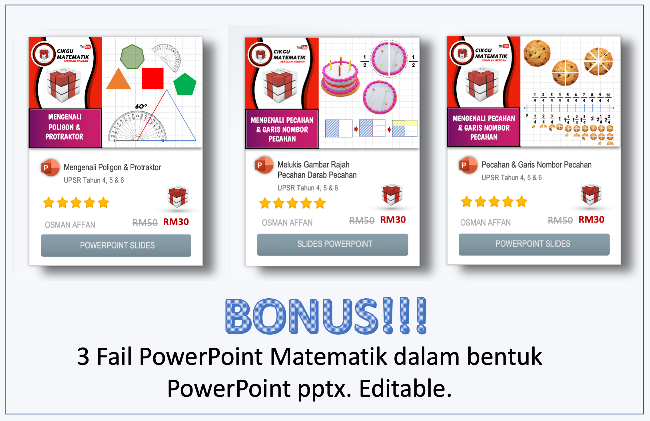 Harga asal kesemua PowerPoint Slides, nota dan PowerPoint Slides bonus yang editable ini ialah